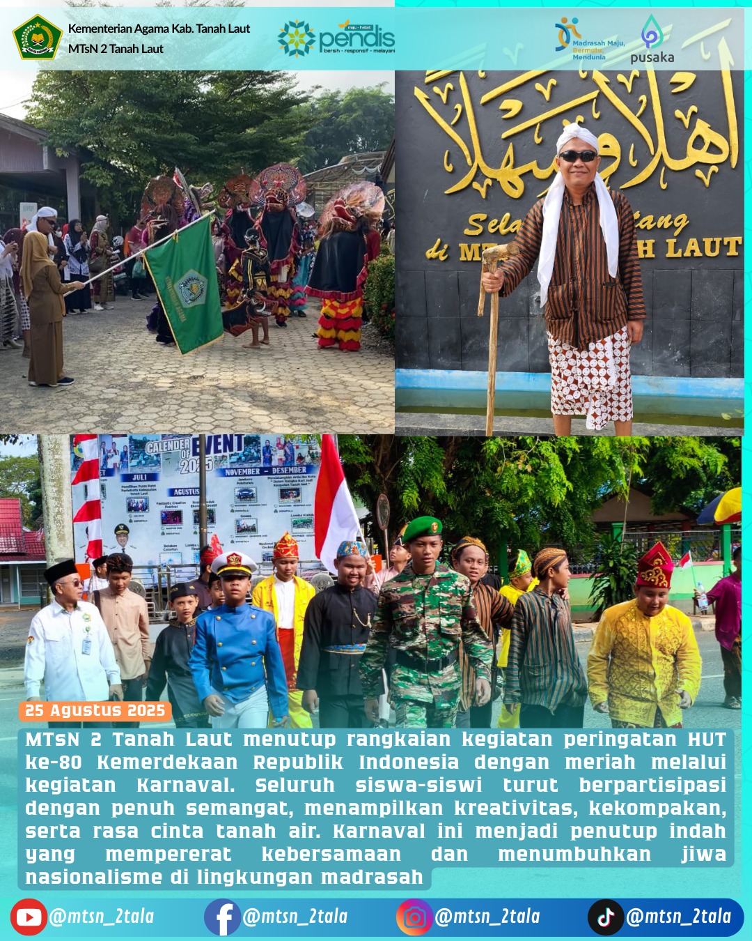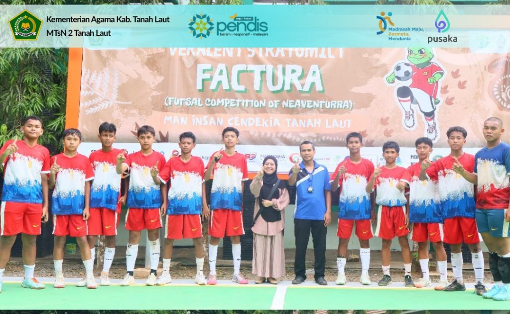 PELAIHARI, 25/08/2025 – Dalam rangka memeriahkan hari jadi MAN IC, Tim Futsal MTsN 2 Tanah Laut berhasil menorehkan prestasi membanggakan dengan meraih juara 1. Keberhasilan ini menjadi bukti nyata semangat sportivitas, kerja sama, dan dedikasi siswa dalam bidang olahraga. Selamat kepada tim futsal atas pencapaiannya, semoga semakin menginspirasi untuk terus berprestasi.